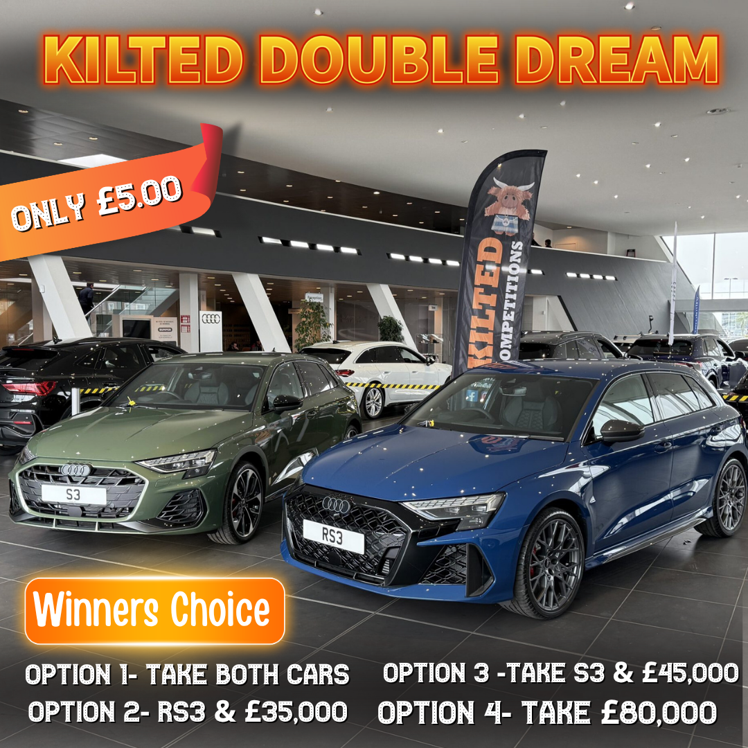 This competition is open to UK residents aged 18 or over. You may enter this competition up to 1000 times. You will be randomly allocated ticket number(s) when ordering and will receive an email confirmation. The total amount of tickets for this competition is (31999). If all tickets do not sell out, the draw will happen on June 22, 2025 regardless. You must answer the competition question correctly to be entered into the live draw. Incorrect entries will not be notified or entered into the live draw. The live draw will take place live on @KiltedCompetitions Facebook using Google’s random number generator to select the winning ticket number from all Entrants. This competition is in no way sponsored, endorsed, administered by or associated with Facebook, Apple or Google. By entering the competitions, Entrants agree that neither Facebook, Apple nor Google have any liability and are not responsible for the administration or promotion of this competition.
