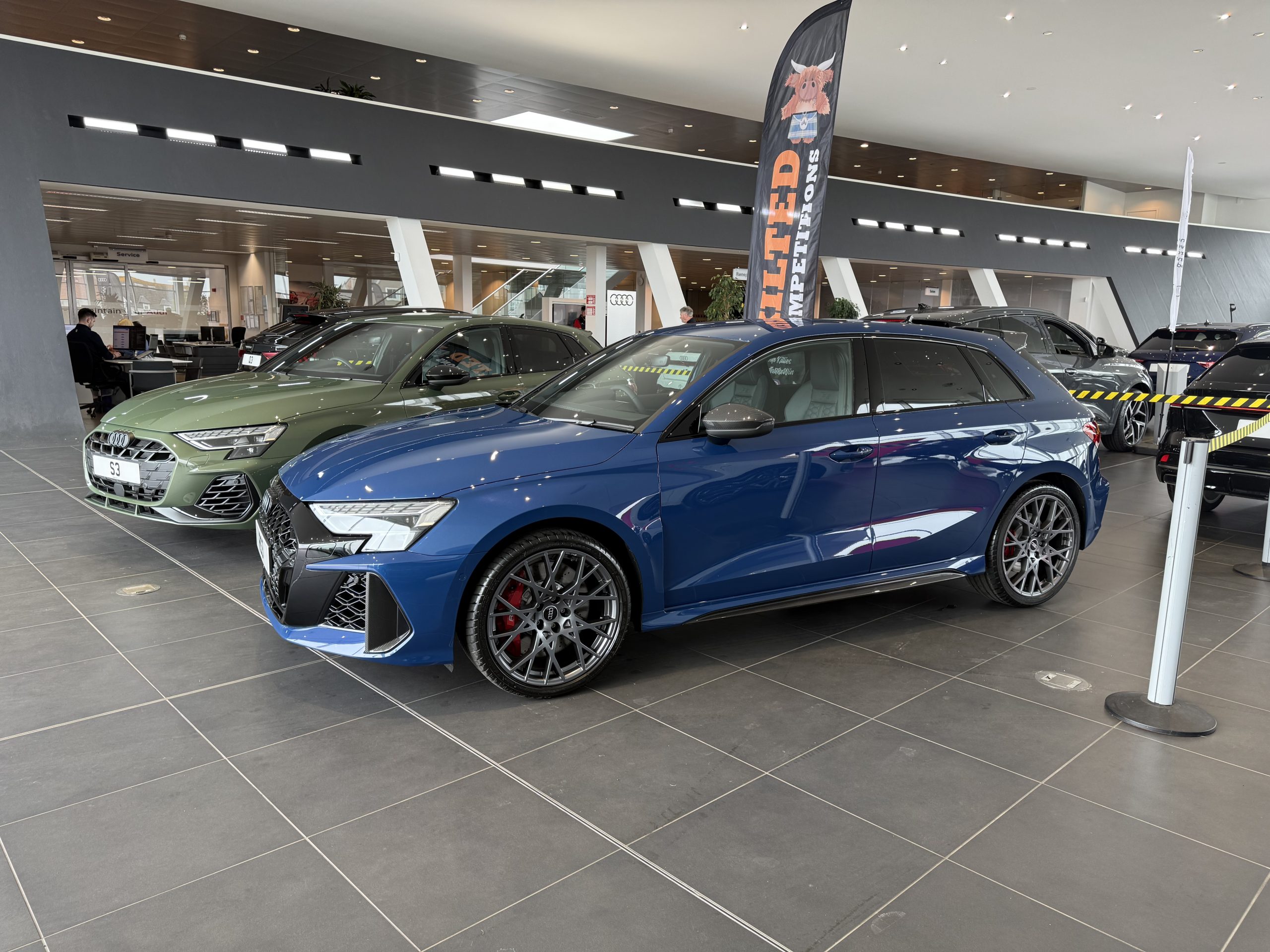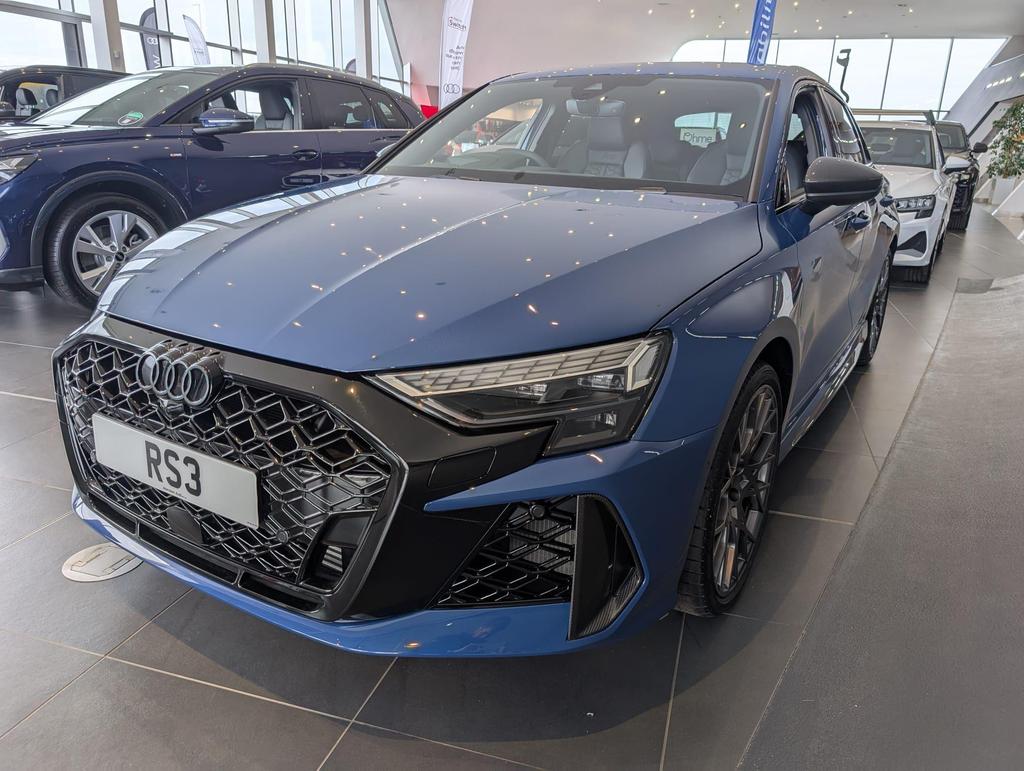 1οΈβ£ 2025 Audi RS3 Carbon Black Sportback β Ascari Blue π